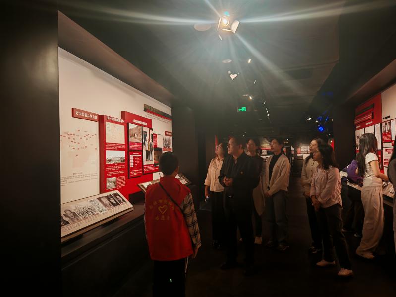 会后,参访团研学团走进南雄市博物馆,在“小小讲解员”的带领下,重点参观了“红色星火·南雄记忆”展厅。展厅内珍贵的历史照片、实物展品生动再现了南雄人民在革命战争年代支援红军、保家卫国的感人场景。当讲到“朱德赠腊肉”的红色故事时,一张泛黄的老照片和朴实的文字描述,瞬间将大家带回那段军民同心的峥嵘岁月——朱德同志将战马留给百姓、将腊肉送给村民的动人往事,引发了在场党员的强烈共鸣。“这块腊肉不仅是物质的馈赠,更是精神的桥梁!”在展陈前驻足良久后,党总支书记李安兰现场点评道,“它让我们看到,中国共产党从诞生之日起,就把‘人民至上’镌刻在骨子里。中央八项规定精神中‘厉行节约、反对浪费’的要求,正是这份初心的延续。新时代的党员干部要始终牢记:权力是人民赋予的,作风问题无小事,必须始终与群众同甘共苦。”