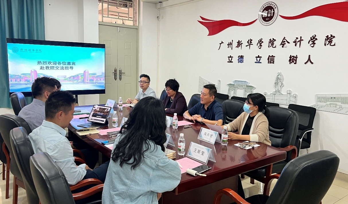 2025年10月21日下午,广州新华学院会计学院(以下简称“我院”)于格物四楼会议室举行了联合国国际人才培养事宜交流会。出席此次会议的嘉宾有纽约金融学院合作发展处总监康一衡、正保集团华南区总监杨智浩、广州国际人才交流协会主任秦亚慧、协会成员王斯莹,以及我院会计学院副院长(主持工作)吴翔、党总支书记李安兰、副书记邓楚云和行政办公室主任莫燕银。