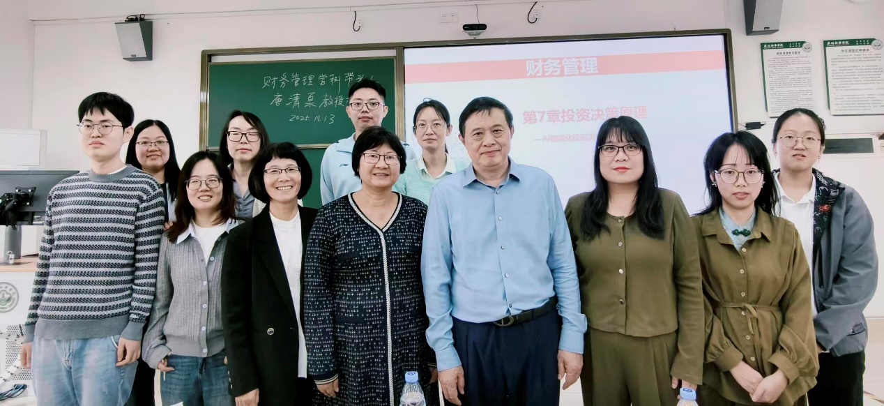 2025 年 11 月 13 日星期四上午 8:20-10:50,广州新华学院会计学院在定静③222 教室成功开展 “AI 时代下智能化投资决策的教与学示范课”。本次示范课由会计学院党总支书记李安兰教授主持,财务管理学科带头人唐清泉教授担任主讲人,财务管理系杨广莉主任、郭婷老师、许彩铃老师、方晓阳老师等多位教师共同参与,围绕 AI 与投资决策的深度融合展开系统授课与互动。