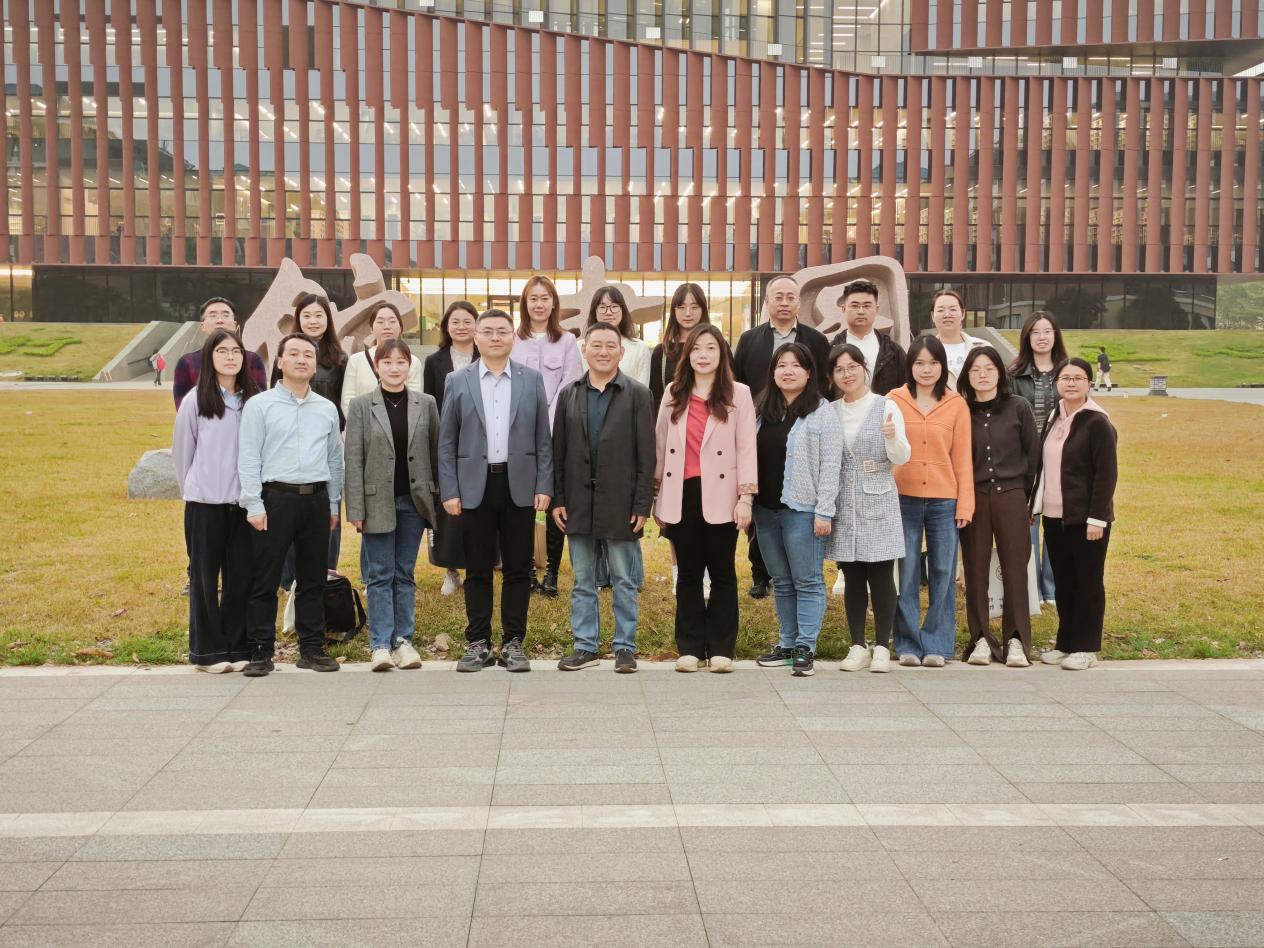 交流接近尾声时,两校代表一同前往学校新建成的图书馆合影留念。这座现代化的图书馆作为教学资源建设的关键载体,其先进的设施配备与浓郁的学术氛围,使来访嘉宾真切体会到我校持续提升的办学实力与育人环境。